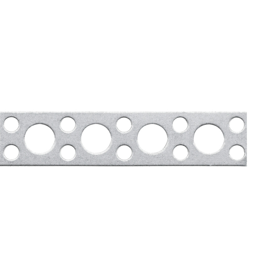Afmeting: 12 mm breed, 0.8 mm dik Materiaal: verzinkt staal Rechte uitvoering voor maximale stevigheid Geperforeerd voor eenvoudige montage