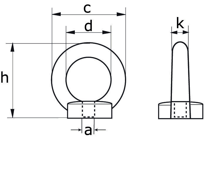 Specificaties Oogmoeren Din 582 M 10 materiaal Staal C15E verzinkt Geschikt voor hijswerkzaamheden Working Load Limit 230 Kg Afmeting : M 10 K : 10 mm C : 45 mm D : 25 mm H : 45 mm WLL : 230 Kg