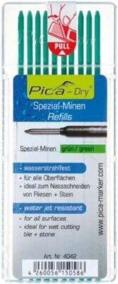 Specificaties Type Pica 4042 Navulbaar : Ja Kleur: Groen Speciaal Diameter : 2.8 mm Lengte: 125 mm Verpakking : 1 stuks inhoud 10 vullingen