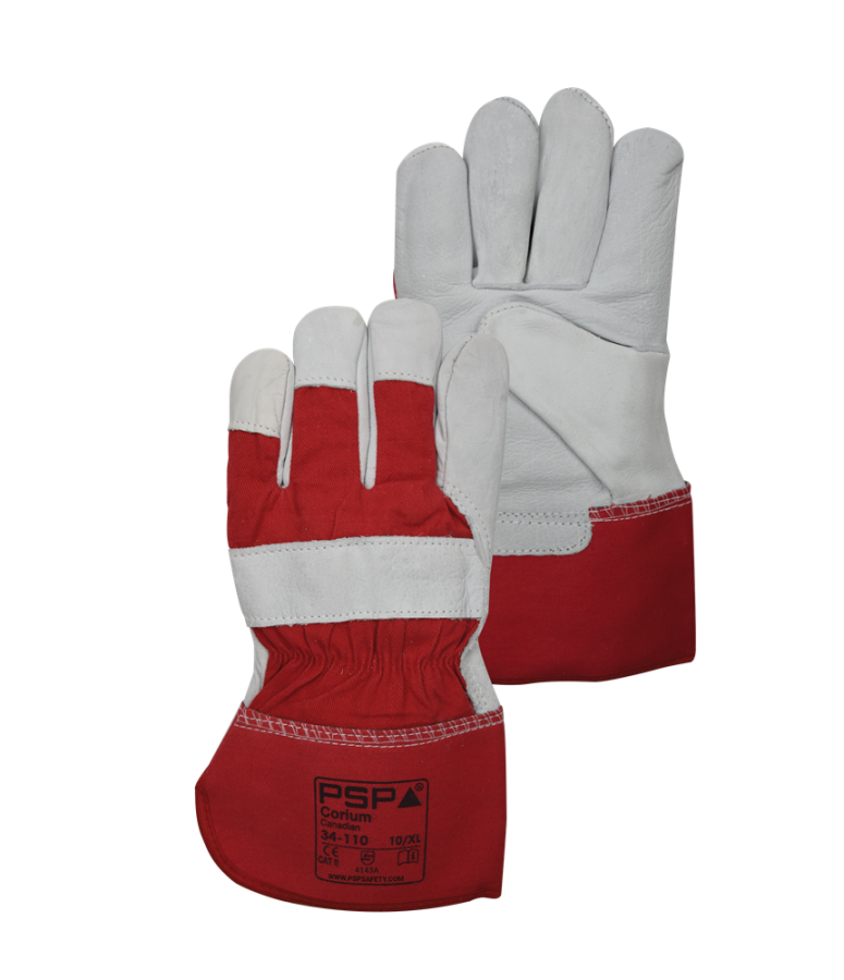 Omschrijving De PSP Corium Canadian 34-110 is een werkhandschoen type “Amerikaantje”, gemaakt van eersteklas rundnerfleder. Soepel gelooid leder van 1.0-1.2 mm dikte. De handschoen is vrij van Chromium VI. Rug en kap zijn van rood katoen met een verlengde gerubberiseerde kap van 10 cm en goede katoenen voering in de handpalm voor extra comfort en vochtopname. Artikel PSP 34-110 is getest en gecertificeerd conform de Europese Verordening EU 2016/425 en de EN-normen EN420 / EN388:2016.