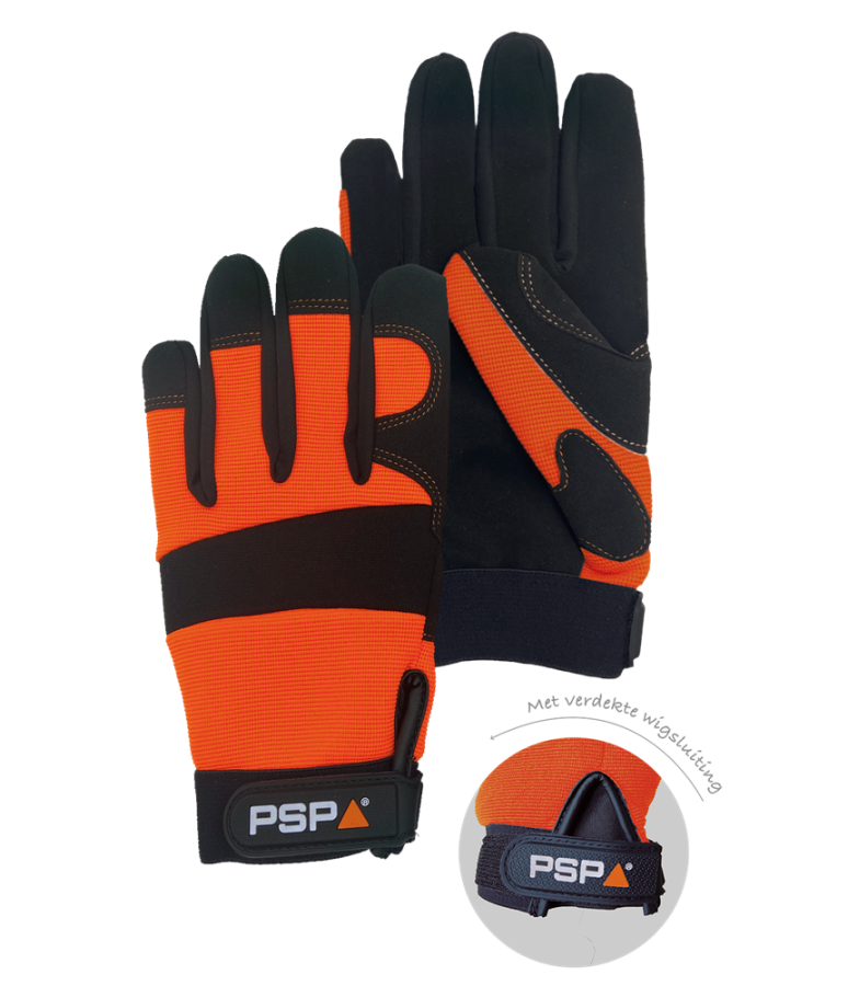 Omschrijving De PSP 39-501 Mechanic Hi-Vis Orange Pro is een werkhandschoen, type “Mechanic”, welke bekend staat om de uitstekende zichtbaarheid, pasvorm en flexibiliteit. Met de Hi-Vis oranje kleur verbetert uw zichtbaarheid, waardoor deze handschoen uitermate geschikt is voor bijvoorbeeld wegwerkers. De voorgevomde handschoen is vervaardigd uit synthetisch leder (microfiber) met een Spandex® rug, welke zorgt voor uitstekende ademende eigenschappen. Het manchet is voorzien van een robuuste TPR sluiting voor extra comfort en bescherming. De verdekte wigsluiting zorgt voor een volledige sluiting om de pols. Deze -van hoog afgewerkte kwaliteit- werkhandschoen is zeer breed inzetbaar in verschillende werkomgevingen en vrije tijd. Artikel PSP 39-501 is getest en gecertificeerd conform de Europese Verordening (EU) 2016/425 en de EN-normen EN ISO 21420:2020 / EN388:2016.