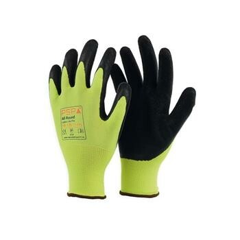 Omschrijving De PSP Allround Latex Lite Pro 10-125 is een handschoen met een 13G rondgebreide nylon Hi-Vis gele liner bedekt met een latex coating. De rug en vingers van de handschoen zijn opengewerkt, wat zorgt voor goede ventilatie en daardoor een uitstekend draagcomfort. De latex coating zorgt voor een uitmuntende droge grip. PSP 10-125 is getest en gecertificeerd conform de Europese Verordening 2016/425 en de EN-normen EN420 / EN388:2016.