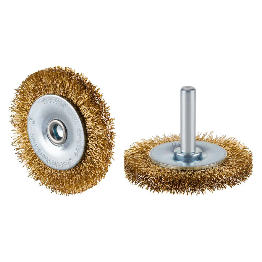 6.0 mm schacht is geschikt voor rechte slijpers en boormachines De gegolfde messingdraad is voorzien van zacht, flexibel en gecontroleerd draadtype Radiale borstel op stift voor nauwkeurige bewerking Licht agressief daardoor reinigen zonder krassen Vonkarm en corrosiebestendig bewerken Toepassing voor Non-ferro metalen, RVS, kunststoffen en gevoelige oppervlakken