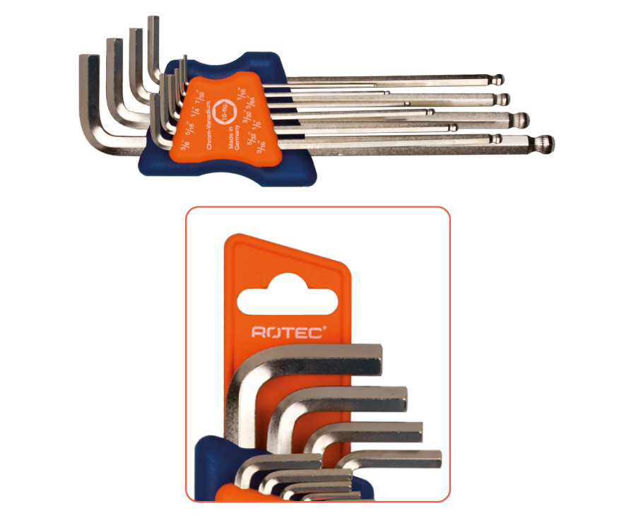 Rotec inbusset kogelkop verchroomd Inch maten 9 delig