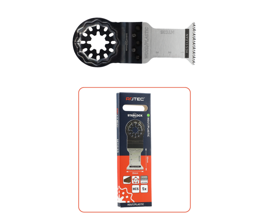 Omschrijving In fijn zaagwerk maakt niet alleen kracht het verschil, maar vooral snijkwaliteit en controle. Het Rotec Starlock Multitool HCS invalzaagblad MTCS35 met Japanse vertanding is ontwikkeld voor vakmensen die streven naar een perfecte afwerking zelfs in hardhout en gevoelige materialen. De MTCS35 is een HCS invalzaagblad met fijne Japanse vertanding, speciaal ontworpen voor ultrastrakke en splinterarme zaagsneden. In tegenstelling tot standaard vertandingen snijdt dit blad het materiaal geleidelijk en gecontroleerd, wat resulteert in een uitzonderlijk glad eindresultaat.