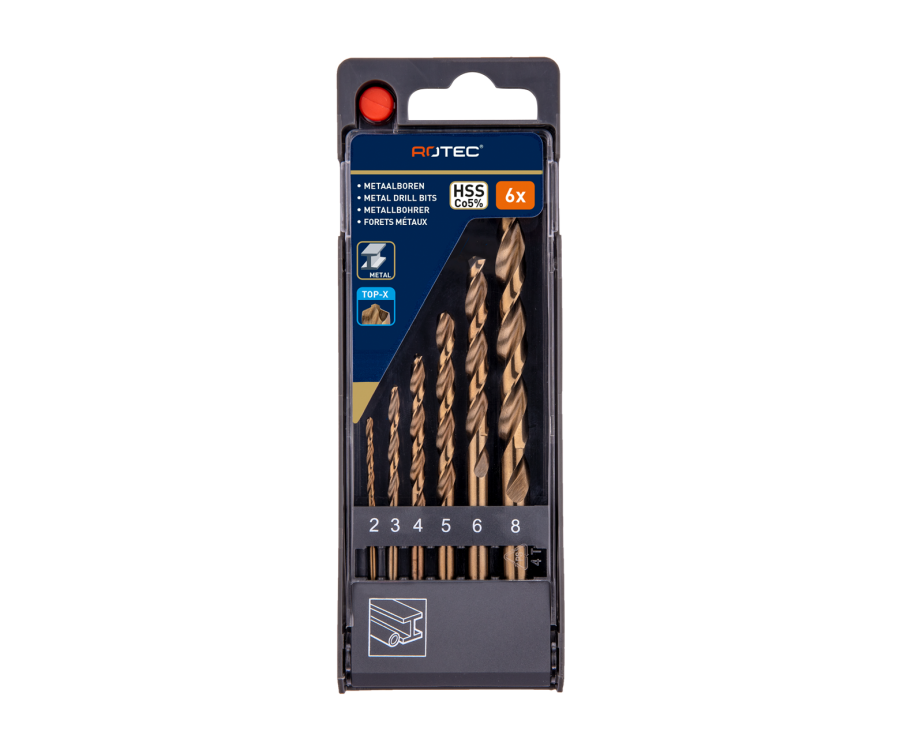Spiraalboren Top-X Gold-Line 6 delige Cassette 2-3-4-5-6 en 8 mm