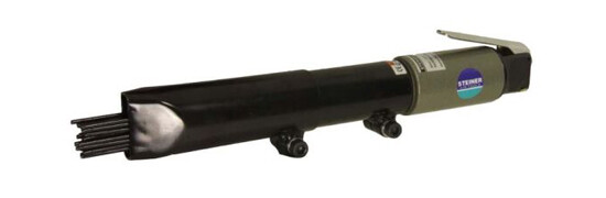 Omschrijving De Steiner SR1511 naaldbikhamer is een krachtige tool, speciaal ontworpen voor veeleisende toepassingen in de industrie. Met een indrukwekkende slagfrequentie van 33.000 BPM en een luchtverbruik van 240 L/min levert deze hamer uitzonderlijke prestaties, perfect voor het efficiënt verwijderen van roest, verf en andere ongewenste materialen. De SR1511 wordt geleverd met 19 naalden van 3,0 mm, waardoor je snel en effectief kunt werken in krappe ruimtes en op diverse oppervlakken. Met een gewicht van slechts 2.5 kg is deze naaldbikhamer licht en gemakkelijk te hanteren, wat langdurig gebruik bevordert zonder vermoeidheid. Met 19 meegeleverde naalden van 3.0 mm kun je verschillende taken aan, van gedetailleerd werk tot grotere oppervlakken. Het ergonomische ontwerp en het lichte gewicht van 2.5 kg maken het gebruik van deze hamer comfortabel, zelfs tijdens langdurige klussen.