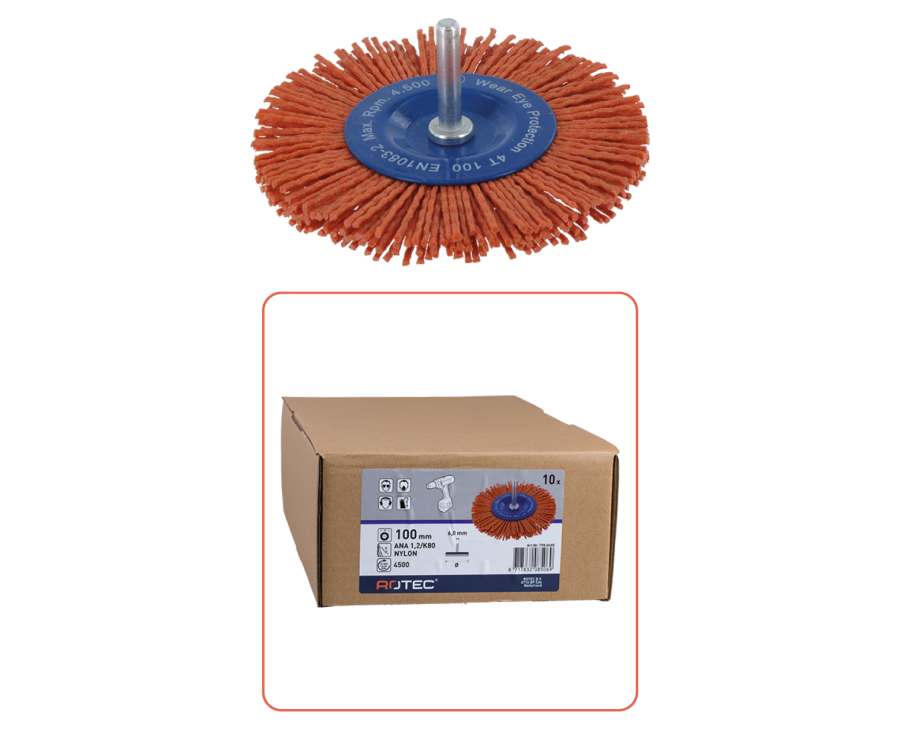 Stiftborstel schacht 6 mm Ø100 1.2/Korrel 80 Orange 8 mm nylon