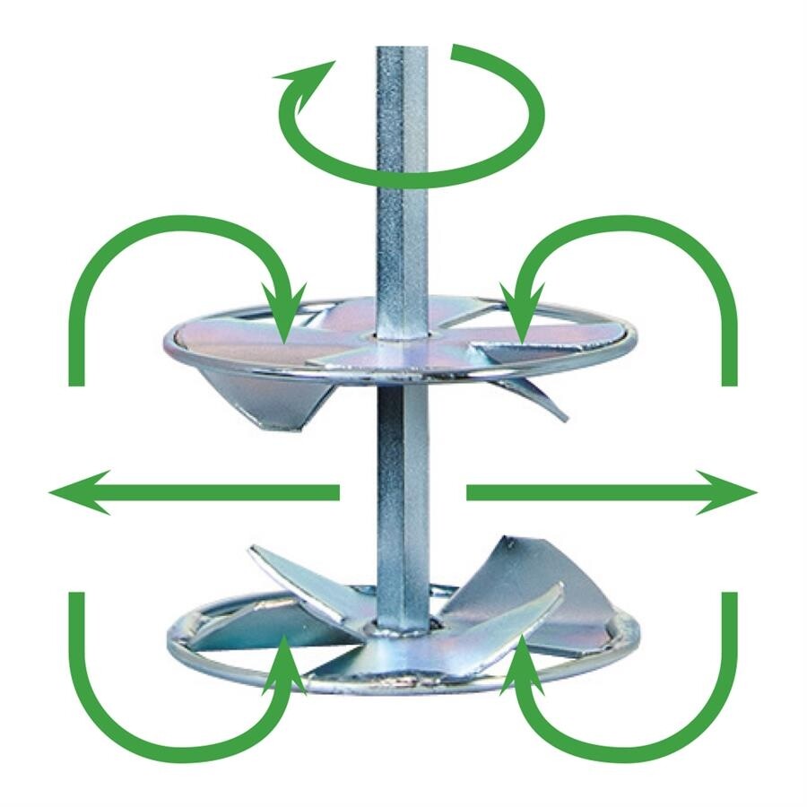Mengcapaciteit van 25-75 kg voor middelgrote mengvolumes Dubbele schoepen model L voor snelle en homogene menging M14 aansluiting voor professionele mixers Diameter 160 mm en lengte ca. 595 mm voor optimale controle Gemaakt van verzinkt staal voor duurzaamheid en slijtvastheid Vermindert spatten en luchtinsluiting tijdens het mengen Mengen van tegellijm, verf, latex en egaline Verwerken van lijmen, coatings en epoxy Gebruik in bouw, afbouw en industriële toepassingen Ideaal voor schilders, stukadoors en installateurs