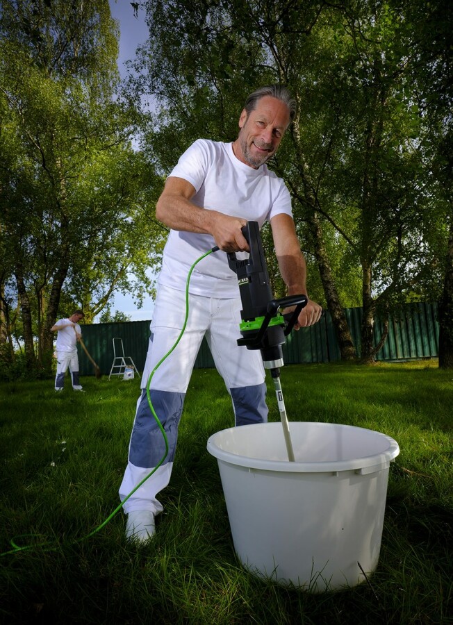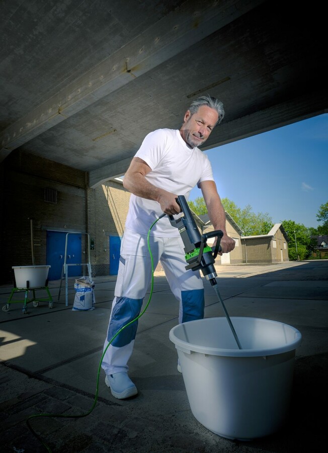 Omschrijving Regelbare mixer voor de professional die werkzaam is in de droogbouw, als tegelzetter, stukadoor, vloerenlegger of in de civiele techniek. Geschikt voor het mengen van bouwstoffen met hoge viscositeit, bijv. vul- en egalisatiemiddelen, gips, tegellijm, kant-en-klare specie, pleisters, gietmortels, epoxyharsen, kitten en granulaten.