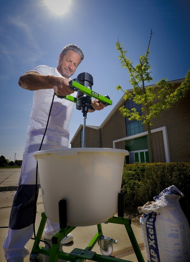 Omschrijving Universele basis mixer voor de professional die werkzaam is in de droogbouw, als schilder, tegelzetter, stukadoor of vloerenlegger. Geschikt voor het mengen van bouwstoffen met lage en gemiddelde viscositeit, bijv. verf, lijm, vul- en egalisatiemiddelen, tegellijm en kant-en-klare pleisters. Mengmateriaal : Verf, Tegellijm, vul- en egalisatiemiddelen, kant-en-klare pleisters Toepassingsgebied : schilder, tegelzetter, stukadoor of vloerlegger Geschikt voor : bouwstoffen met lage en gemiddelde viscositeitKenmerken Elektronische schakelaar - softstart toerental regeling, voorkomt spatten M 14 binnendraad - grote krachtoverbrenging, gebalanceerde hoofdas Ergonomische metalen beschermbeugel Deze mixer wordt standaard geleverd inclusief garde model Z-120 met een lengte van 600 mmSpecificaties Vermogen : 1100 Watt Aansluiting : M 14 Toerental onbelast : 0-900 rpm. Toerental belast : 0-500 rpm. Beschermingsklasse : 2 Beschermingsgraad : IP 20 Spanhalsdiameter : 46 mm Diameter mengkorf : tot 120 mm Mengcapaciteit : tot 40 kg Versnellingen : 1 Kabellengte : 3 meter Kabelsoort : H07RN-F Neopreen Aders/doorsnede : 2 x 1.0 mm² Toerental regeling : Variabel Spanning : 230 Volt Schakelaar : Traploos regelbaar Afmeting :360 x 200 x 300 mm Gewicht : 4.7 kg Kleur : Zwart / Groen Materiaal : Metaal / Kunststof Keur : CE