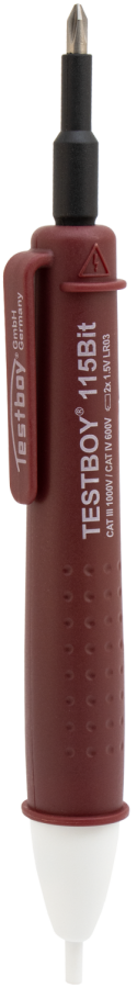Omschrijving Testboy 115 Bit Contactloze Spanningstester 115 Bit Contactloze Spanningstester De nieuwe contactloze spanningstester "Testboy 115 Bit" detecteert spanningvoerende geleiders van 12 V AC tot 1000 Volt AC Toepassing bij laagspanningssystemen, kapotte aders in verlengkabels, defecte lampen, kerstverlichting en defecte zekeringen Met de capacitieve meetmethode worden defecten binnen enkele seconden gedetecteerd, tot op de centimeter nauwkeurig Een visuele weergave toont de spanning: rode Led voor spanningsweergave van 110 Volt-1000 Volt AC; blauwe Led wanneer de 12 Volt-modus is geactiveerd paarse Led voor spanningsweergave van 12 Volt - 1000 Volt AC De Testboy 115 Bit detecteert fasegeleiders in eenfasige en driefasige netwerken Een ingebouwde bithouder maakt de functie van een schroevendraaier mogelijk