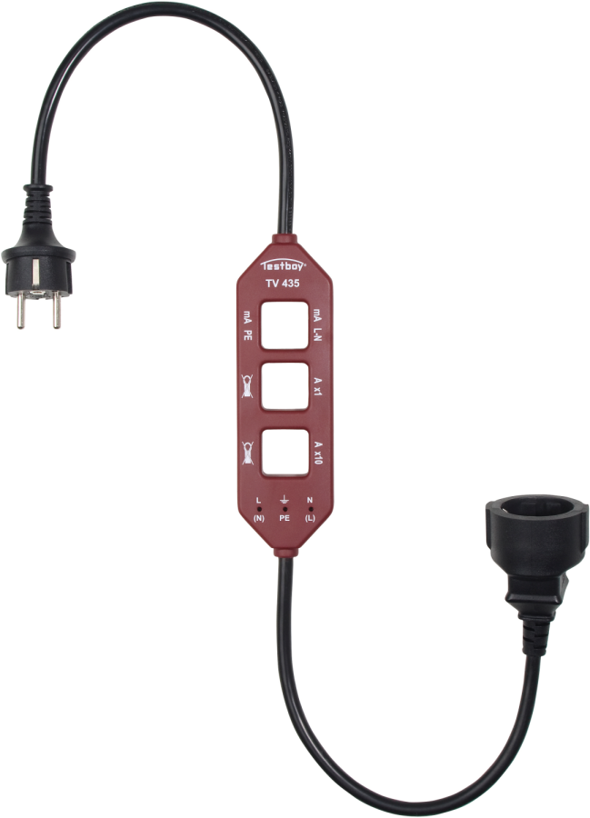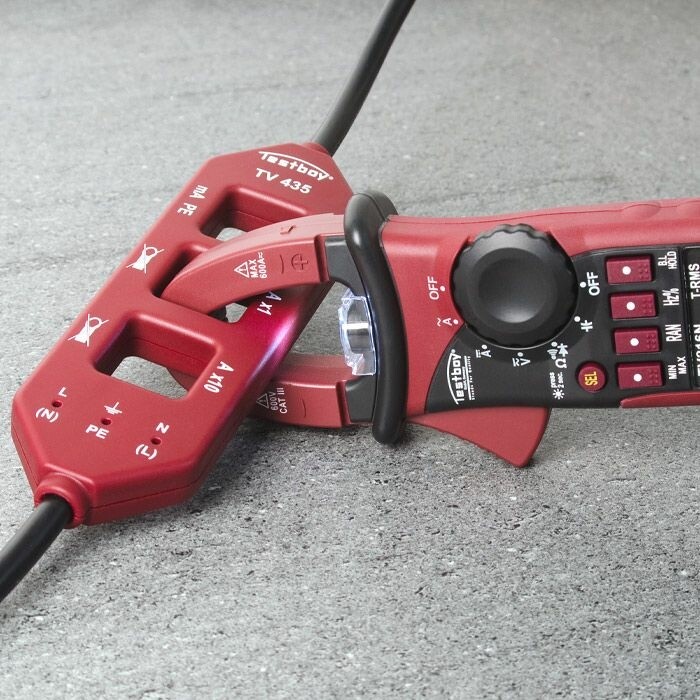 Omschrijving Testboy TV 435 Meetadapter Meetadapter TV 435 Adapter voor het testen van diverse meetwaarden van een verbruiker Kan probleemloos tussen de verbruiker en de wandcontactdoos worden geschakeld Met stroomtang bepalen van: belastingsstroom, verschilstroom tussen fase en nul en de aardlekstroom Meting vermenigvuldigd met factor 10 nuttig bij stroomtangen met geringe gevoeligheid of te hoge bereiken Via de aanwezige meetbussen kunnen ook de spanningen tussen de aangesloten geleiders worden gemeten
