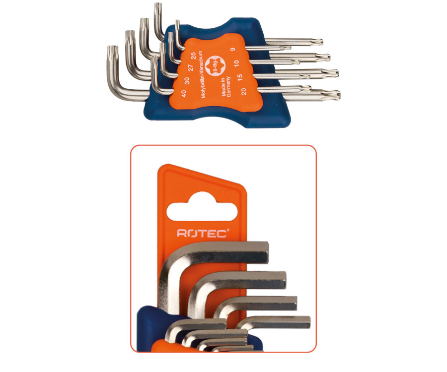 Omschrijving Een Rotec Torx stiftsleutelset in L-model is een hoekige sleutel met een Torx-aandrijving aan één uiteinde, vervaardigd uit chroom-vanadiumstaal. Het L-model biedt een korte en een lange arm, waardoor je zowel hefboomwerking als toegang in krappe ruimtes hebt. Het gebruikte materiaal zorgt voor hoge slijtvastheid en duurzaamheid, ideaal voor professioneel gebruik. De Torx-stiftsleutel is ontworpen voor het aandraaien of losdraaien van Torx-schroeven. De L-vorm met korte en lange zijde, voor optimale hefboomwerking en bereik. Chroom-vanadiumstaal Sterk, taai en bestand tegen vervorming vanwege de hoge hardheid en weerstand tegen slijtage—geschikt voor intensief gebruik. .