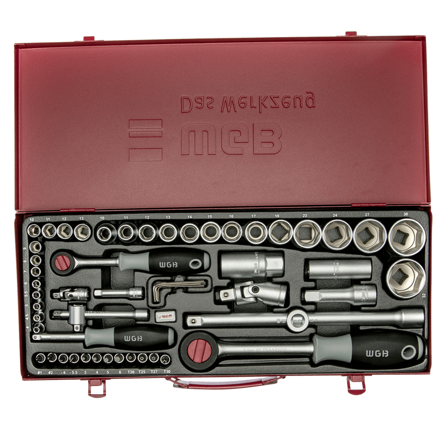 WGB Doppen/bitset 3920 1/2 + 1/4 56 delig in metalen koffer