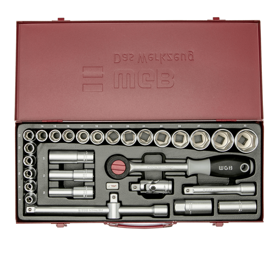 WGB Doppenset 1/2 8-32 mm 29 delig in metalen koffer Type 3880